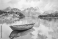 Fototapeta Serene Waterscape with a Wooden Boat and Majestic Mountains