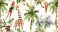 Naklejka na meble Wild animals watercolor seamless pattern with giraffe and elephant, monkey with cockatoo, parrot savannah with palm trees. Repeating background.