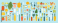 Naklejka na meble A colorful arrangement of various fruits, vegetables, and kitchen utensils on a light blue background.