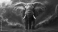 Fototapeta Colorful painted elephant emerging from stormy clouds.