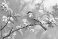 Fototapeta Sparrow perched on a flowering branch basking in sunlight during a clear day, sparrow sitting on a flowering branch on a sunny day