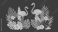Fototapeta Two elegant pink flamingos stand amongst lush tropical foliage and vibrant flowers.