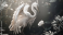 Fototapeta A white egret with wings spread stands in a lush green forest, bathed in soft sunlight.