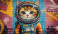 Fototapeta Cute cat astronaut graffiti on colorful brick wall background, pop art style