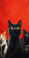 Fototapeta Group of Curious Black and Ginger Cats Against a Bold Red Background