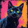 Fototapeta Black cat with glowing yellow eyes on a colorful graffiti background.Urban art design, black cat illustration, modern artwork, graffiti concept, street art poster, pop art illustration.
