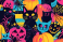 Fototapeta Neon Cats Pumpkins And Spiders Halloween Art