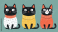 Naklejka na meble Three multi-colored cats, each in their own distinct clothing style, sitting side by side, looking at the camera as if ready for a group photo.