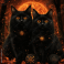 Fototapeta Two Mystical Black Cats with Glowing Amulets in Enchanted Autumn Forest – Halloween Magical Scene