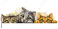 Fototapeta Wall sticker. Graphic, colored hand-drawn sketch with splashes of watercolor depicting three cute cats on a horizontal surface.
