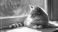 Naklejka na meble Cute foldeared cat on window with sun from it, generative ai