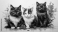 Naklejka na meble Red flowers and three cats. illustration in watercolor style. Generative Ai