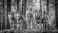 Fototapeta Medium shot of wolf pack in front of forest with highly detailed wolves and nature background wallpaper for widescreen and superwide