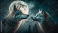 Naklejka na meble two wolves in the moonlight, generative ai