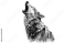 Fototapeta wolf howling at the moon isolated on white background. AI generated.