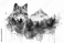 Fototapeta Watercolor portrait of a wolf in the mountains on a white background