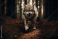 Naklejka na meble Angry lone wolf walking alone in a forest path, showing teeth, front face ready to attack