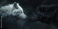 Naklejka na meble Two wolves, one white and one black, standing face-to-face