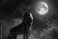 Naklejka na meble Lone wolf is howling at the full moon in a dark starry night