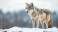 Fototapeta A lone wolf silhouetted against a snow-covered mountain range, with a sense of solitude and strength in its posture. The scene evokes a feeling of awe and wonder at the resilience of wildlife in