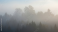 Fototapeta Ethereal Forest Landscape Shrouded in Dense Morning Fog with Silhouetted Trees and Soft Diffused Light