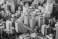 Fototapeta Aerial view of a cityscape with a tilt-shift effect making skyscrapers and streets look miniature, evoking a whimsical and artistic feel.