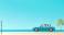 Tapeta koło Group of Friends Enjoying a Road Trip in a Convertible Car by the Beach Under a Clear Blue Sky with Palm Trees in the Background