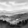 Tapeta koło Watercolor Mountain Range Landscape in Blue Hues.