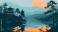 Fototapeta Beautiful Mountain and Cottage Landscape Illustration