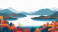 Fototapeta Autumn panorama view mountainous vistas with vibrant