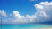 Tapeta koło Beautiful beach with white sand turquoise ocean blue sky with clouds and palm tree over the water 16