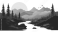 Fototapeta Stunning illustration of a mountain range with a winding river flowing through the foreground.
