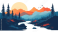 Tapeta koło Stunning illustration of a mountain range with a winding river flowing through the foreground.