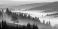 Fototapeta Fog Covered Forest Ridge Disappearing into White