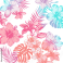 Fototapeta Delicate, vibrant floral pattern with gradients of pinks, purples, and blues on a white background.