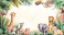 Fototapeta A watercolor-style cartoon frame of safari animals borders a cute zoo background.