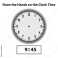 Tapeta koło Draw hands Analog clock 9:45. What is the time, Learning clock, and math worksheet? Telling the Time Practice for Children Worksheets. Learning analog on the clock. Educational activity.