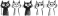 Tapeta koło Five cartoon cats with varying facial expressions, black and white drawing. Vector illustration