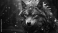 Tapeta koło A majestic wolf with a crown of jewels and feathers, illuminated by warm light and glowing embers.