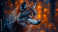 Fototapeta A majestic wolf stands proudly amidst a mystical, glowing forest, exuding strength and mystery