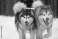 Tapeta koło Two shaggy sled dogs, a red and a gray Alaskan malamute, drive a sleigh together in the snow in winter