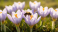 Tapeta koło Bee collecting nectar from a purple crocus flower in spring.