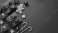 Fototapeta A festive Christmas composition on a deep blue background featuring wrapped presents and holiday decorations.