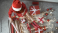 >Tapety koła>Tematy>Kwiaty>A young woman is packing Christmas presents for her friends and relatives. Girl creates New Year's packages with red paper, colored ribbons. Christmas decorations, preparation for the holiday season.